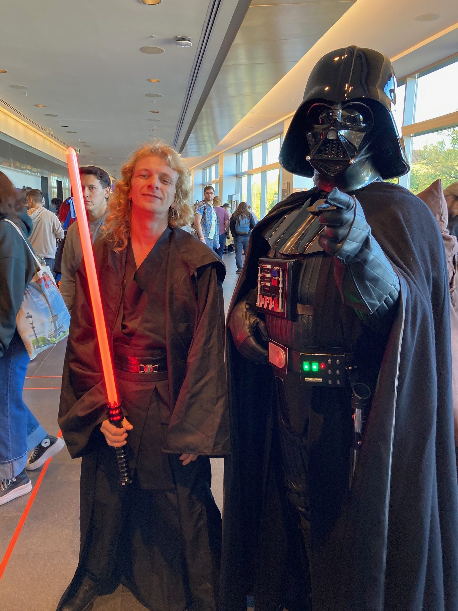 Évidemment, avec encore plus d’exposants, d’artisans et de commerçants, l’organisation a dû repenser la disposition des kiosques afin de donner le maximum d’espace et de visibilité à chacun. Du côté des exposants, plusieurs ont été plutôt ingénieux au niveau de l’occupation de leurs précieux pieds carrés, créant certains petits dédales pour nous faire visiter les nombreux articles mis à la disposition de nos yeux ébahis. Et oui, je dis bien “ébahis”, car l’offre de trucs inusités est tellement grande, qu’il ne s’agit que de quelques minutes afin de nous créer des dizaines et des dizaines de besoins en un rien de temps! Après chaque nouveau kiosque visité, je me suis félicité de ne pas avoir flanché pour une peinture faite à la main devant nos yeux et ce, en moins de 3 minutes, l’un des superbes sabres laser de l’univers Star Wars, des luminaires rétro-éclairés à l’effigie de diverses franchises geek, des casquettes, des t-shirts, des livres dédicacés de la mains des auteurs sur place, bref, la tension sur moi et mon portefeuille était intense!