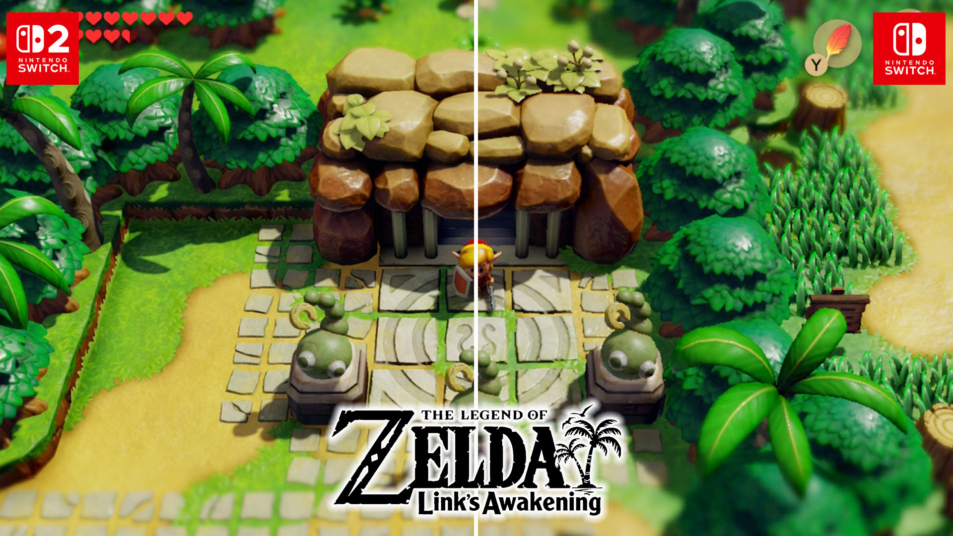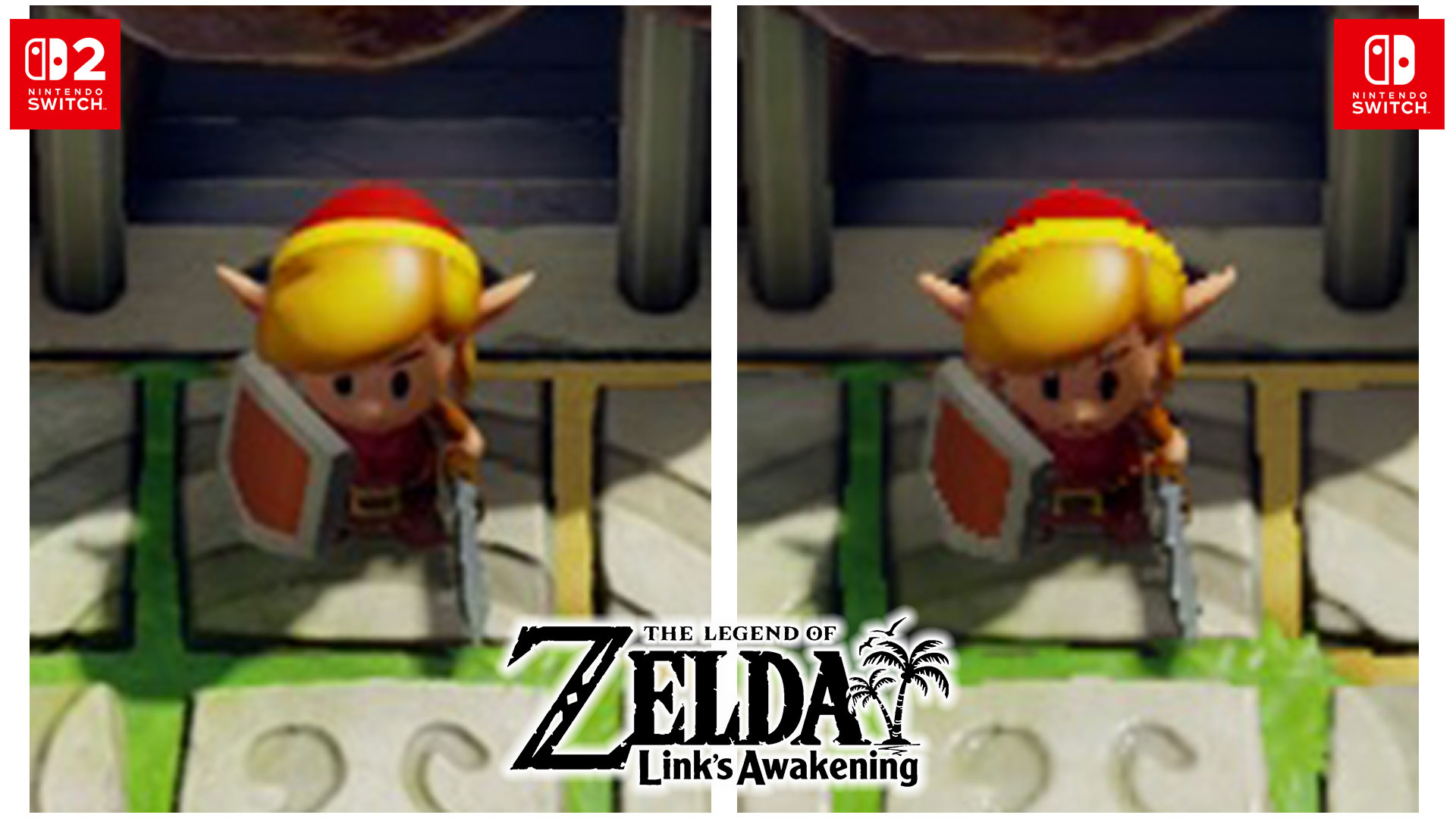 Heureusement, les cartouches de la Switch sont presque totalement compatibles avec la Switch 2 et pour beaucoup de jeux Switch, on dénote de bien meilleures performances et rendus visuels. J’ai d’ailleurs fait le test avec The Legend of Zelda: Links Awakening et le jeu est tout simplement splendide sur Switch 2! Les bordures sont moins morcelées en raison de la meilleure résolution et d’un système d’anticrénelage (anti-aliasing) plus performants. De plus, les petits ralentissements que j’avais à certains endroits sur Switch sont maintenant totalement disparus! Si vous faites le tour de vos jeux, vous verrez que plusieurs profitent de belles améliorations et ce, sans devoir faire de mise à jour spécifique!