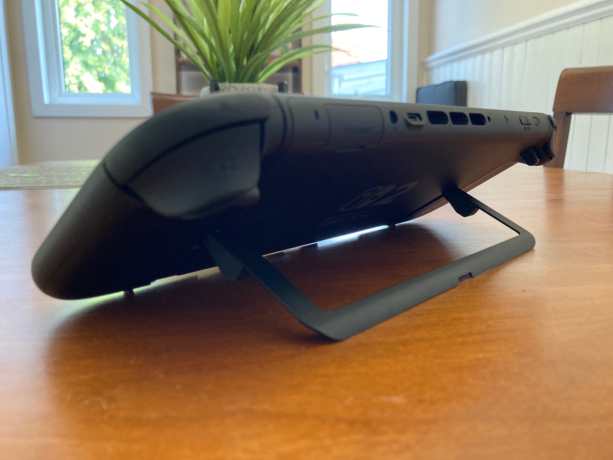 L’autre petite différence sur la Nintendo Switch 2, c’est son nouveau trépied. Au lieu d’un support en plastique un peu frêle comme sur les anciens modèles, la Switch 2 propose maintenant un support métallique pouvant se régler sur plusieurs positions. C’est vraiment très bien construit, car la résistance du support est juste assez rigide pour permettre de le placer comme désiré et de demeurer solidement en place sans broncher d’un poil. D’ailleurs, autre petit changement sur la Switch 2, qui est beaucoup plus pratique que sur la Switch et la Switch OLED: la console possède maintenant deux ports USB-C, l’un se trouvant en-dessous et l’autre au-dessus. Ce dernier est vraiment très pratique lorsqu’on désire jouer en mode tablette sur une surface et que nous avons besoin de charger la console et/ou d’y ajouter un accessoire, comme la caméra par exemple.